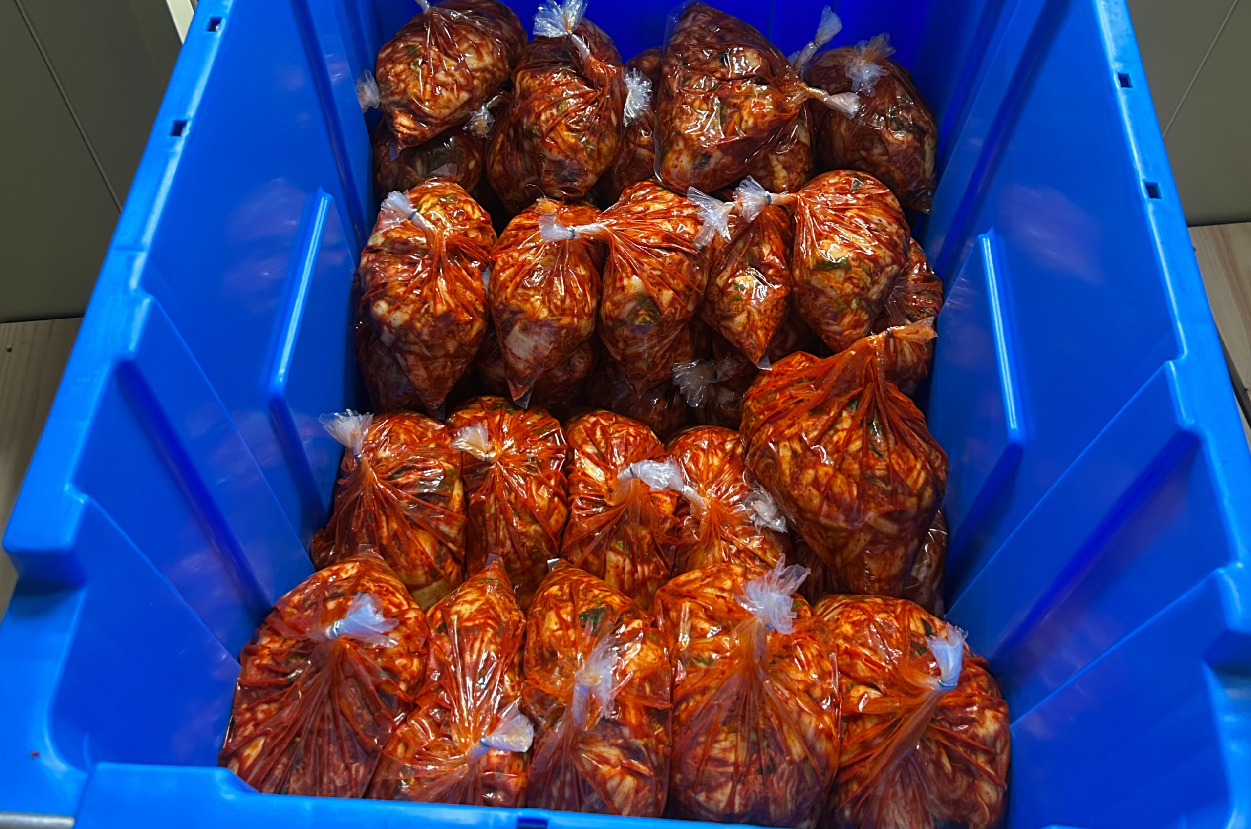 絶品キムチ、京都美味い妓の完成です。ここから全国のお客さまのもとへお届けします。